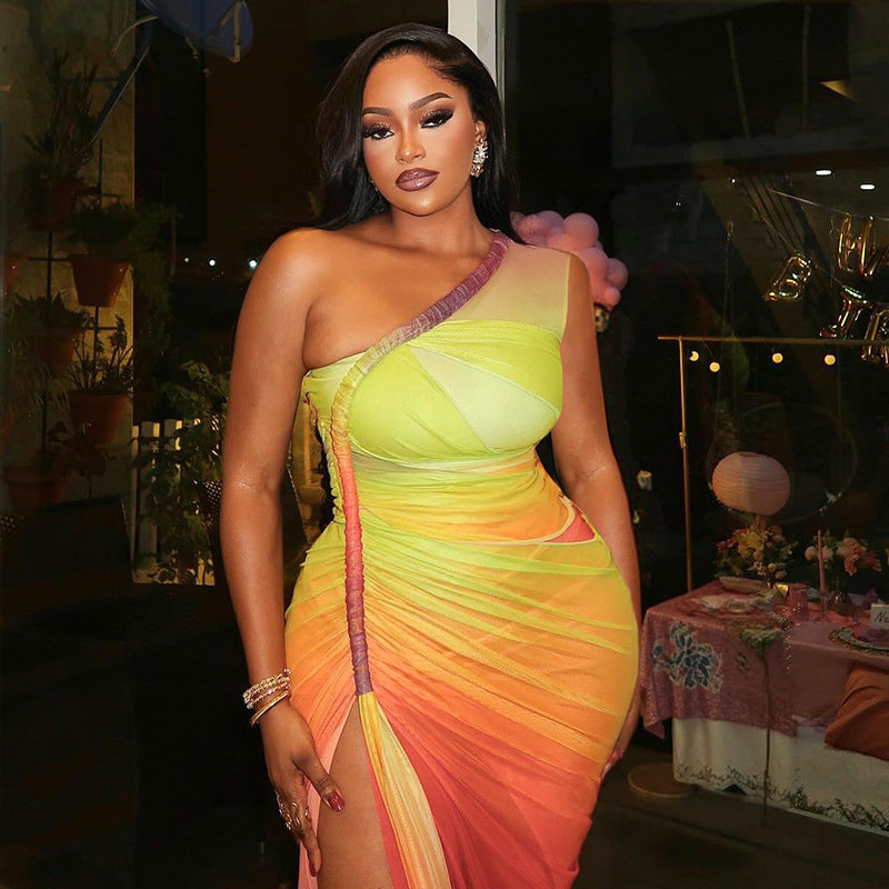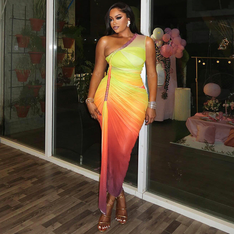Women's Gradient Printing Shoulder Sleeveless Dress